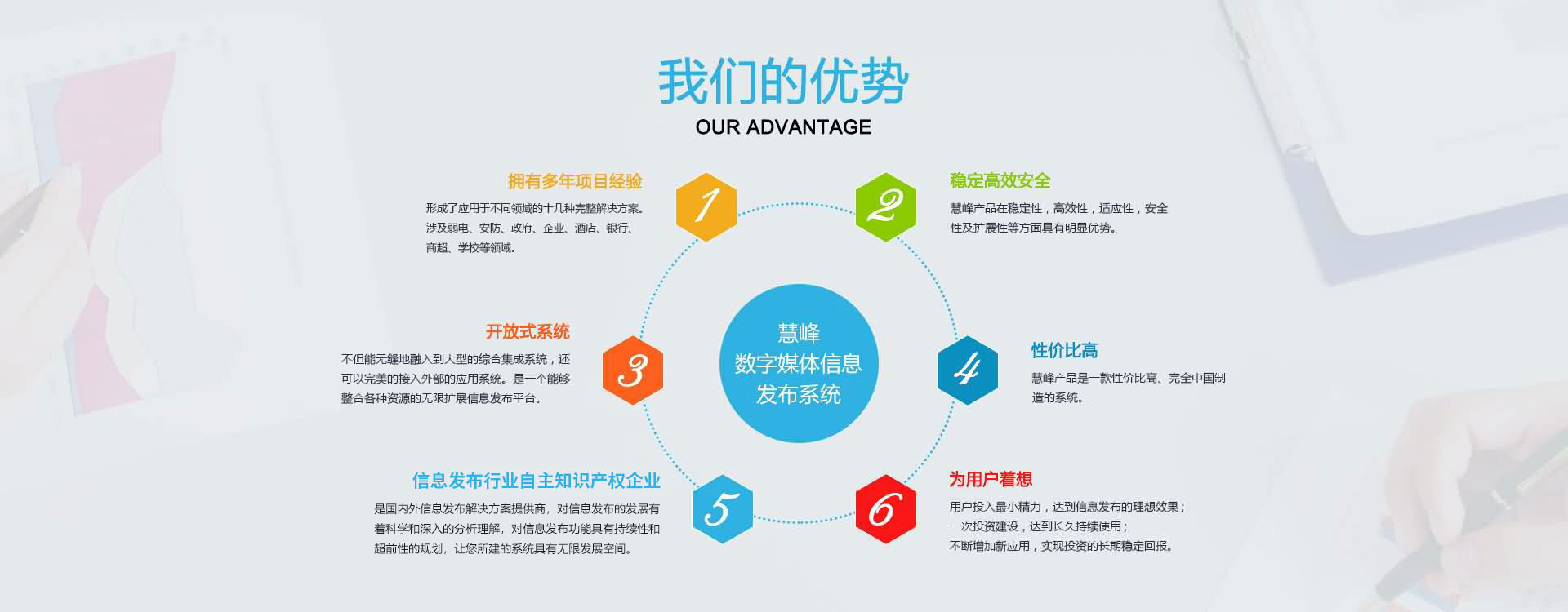 公司本著互惠互利,誠實信用的原則,真誠面對用戶,并愿與社會各界展開廣泛的合作。 公司現(xiàn)已是國內(nèi)的數(shù)字媒體信息發(fā)布系統(tǒng)解決方案提供商,產(chǎn)品涉及大中型企業(yè)、商業(yè)地產(chǎn)、各級黨政機關(guān)、軍隊、司法、信息通信、金融、醫(yī)療、教育、能源交通、公用事業(yè)領(lǐng)域。